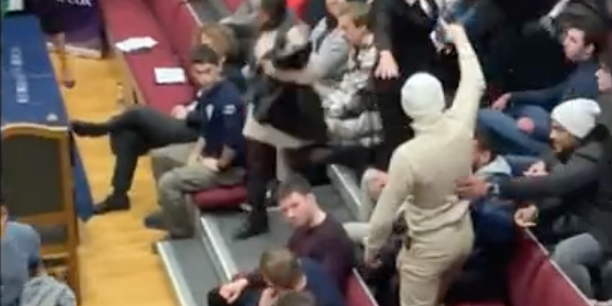 A debate about Palestine at a university became vicious after an audience member started shaking his fist and yelled “Allahu Akbar”.