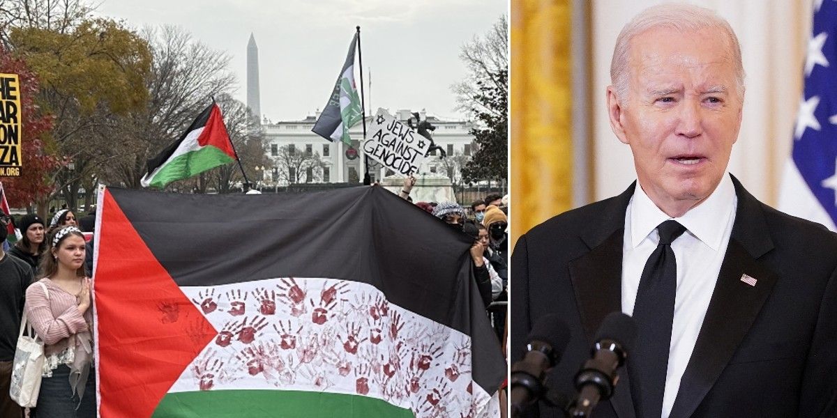 Demonstrators, including one carrying a placard that reads "Biden Enables Genocide", take part in the "We Wonu2019t Back Down: All Out for Palestine" protest in support of Palestinians, as the conflict between Israel and Hamas continues, in Boston, MassachusettsDemonstrators, including one carrying a placard that reads “Biden Enables Genocide”, take part in the “We Won’t Back Down: All Out for Palestine” protest in support of Palestinians, as the conflict between Israel and Hamas continues, in Boston, MassachusettsREUTERS