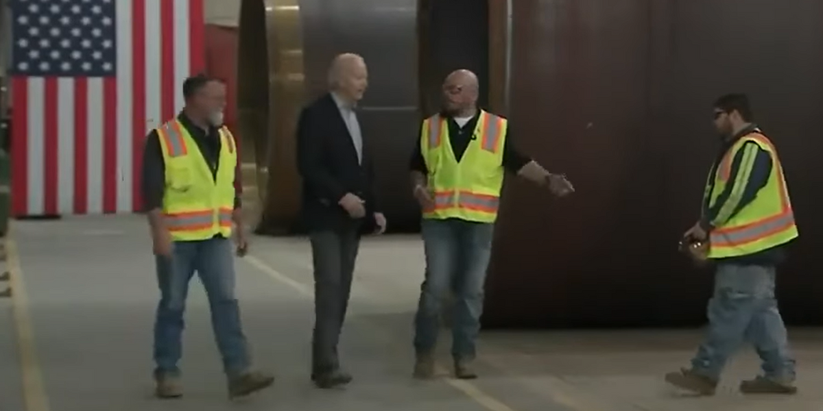 In the video, President Biden approached three workers at the facility and one of them appeared to ask a question.