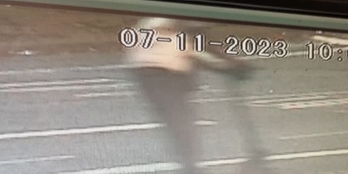 The low-quality image show a man riding an electric scooter in the area where the attack took place.