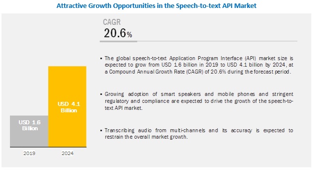 Nov 19th, 2021 · Comments Off on By 2024 Speech-to-text API Market expected to reach $4.1 billion, at a CAGR of 20.6%