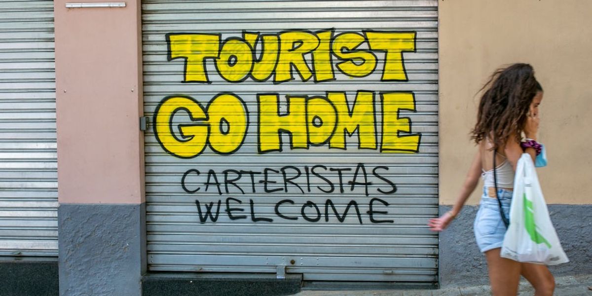 In Barcelona, graffiti in the Old City reads: “Tourist go home!”