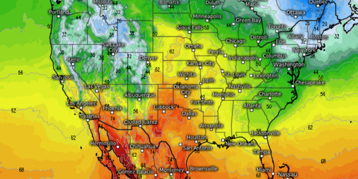 “Temperature-wise, most of the continental US remains devoid of frigid or winter-like air masses.