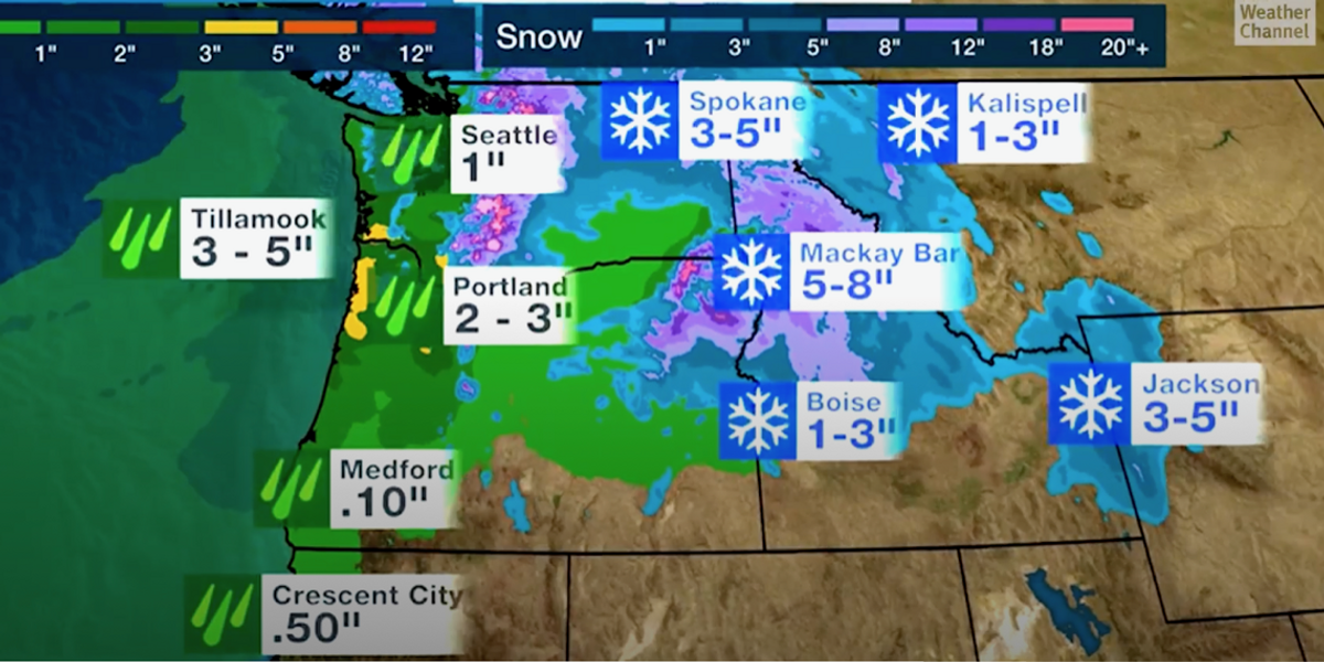 “As we get into Monday, we will see more of the precipitation inland, especially across parts of Idaho and Montana, and we are going to see a lot of snow there.