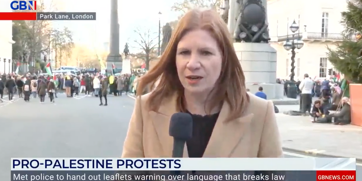 GB News’ poltiical correspondent Katherine Forster was left shaken after being harrassed while reporting on a pro-Palestine protest in London.