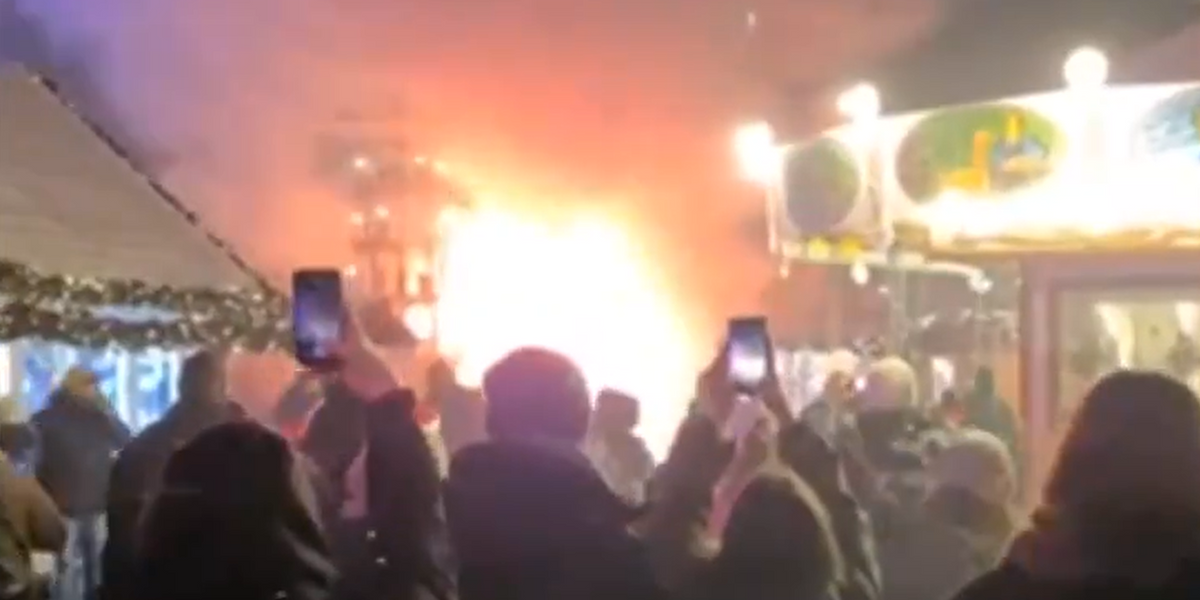 A Christmas Market popular with tourists has burst into flames after a number of stalls caught fire last night.