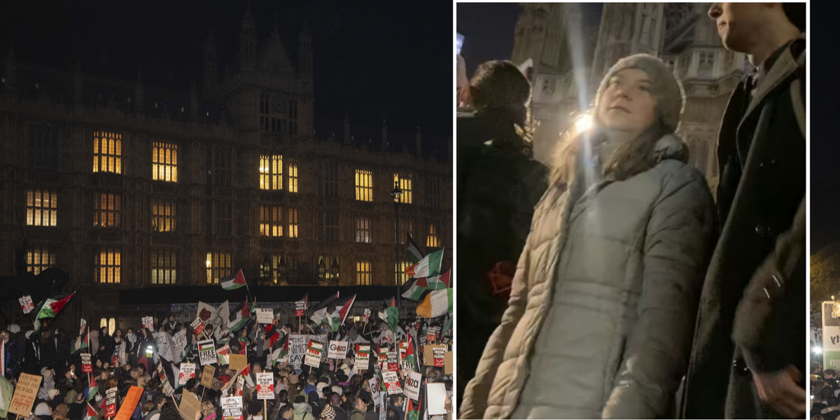 Thunberg was snapped at a rally outside of parliament, as MPs voted on whether to call a ceasefire or not