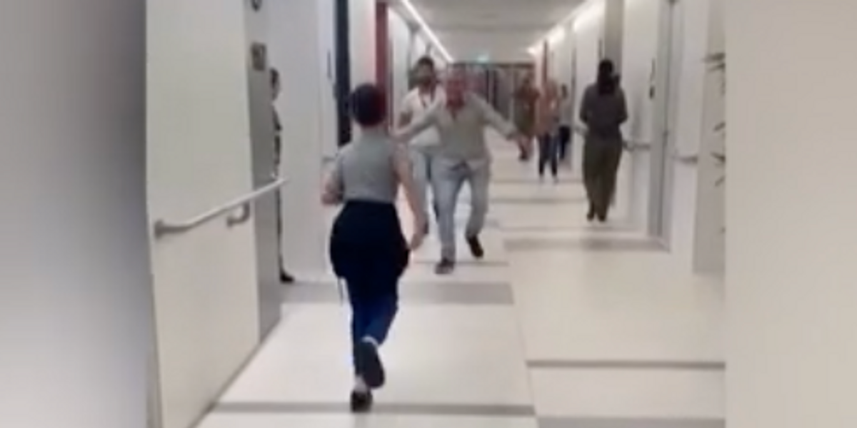 Video footage captured the moment he ran down the hospital corridor to embrace his dad in a hug.