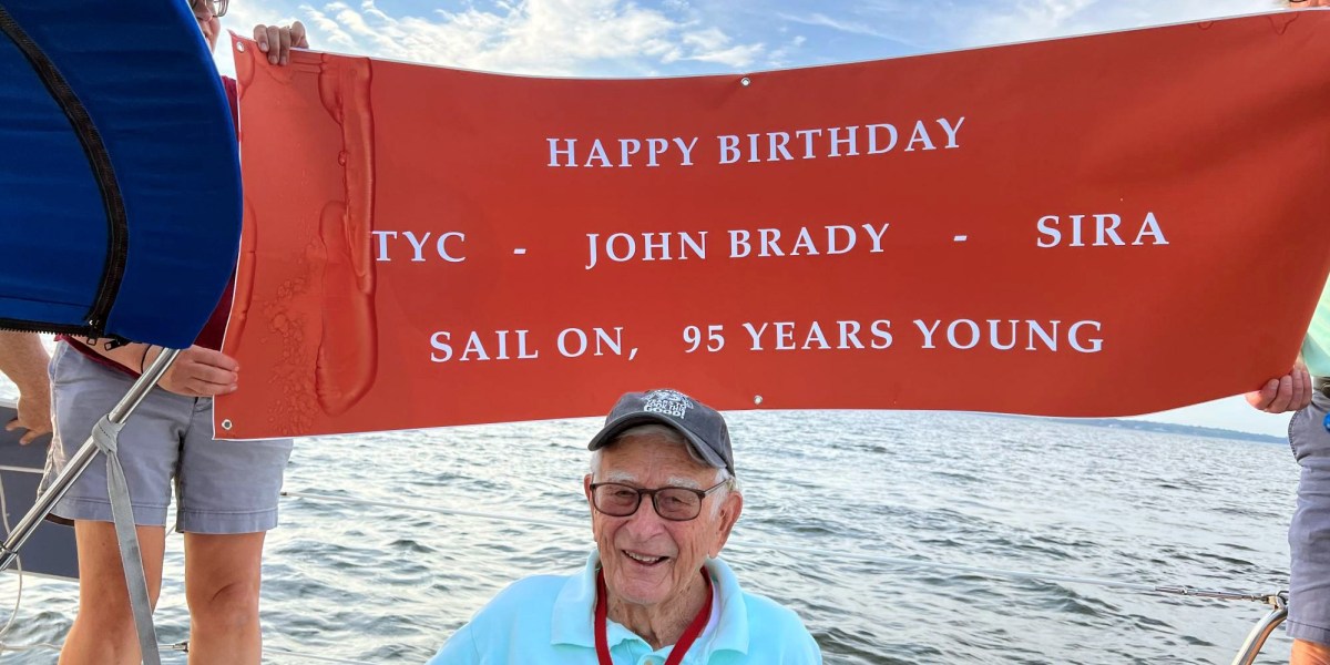 Brady recently celebrated his 95th birthday “albeit with braces on both knees,” he says, and he rarely misses the Wednesday-night races in Narragansett Bay, where he still sails as tactician on a Frers 36.