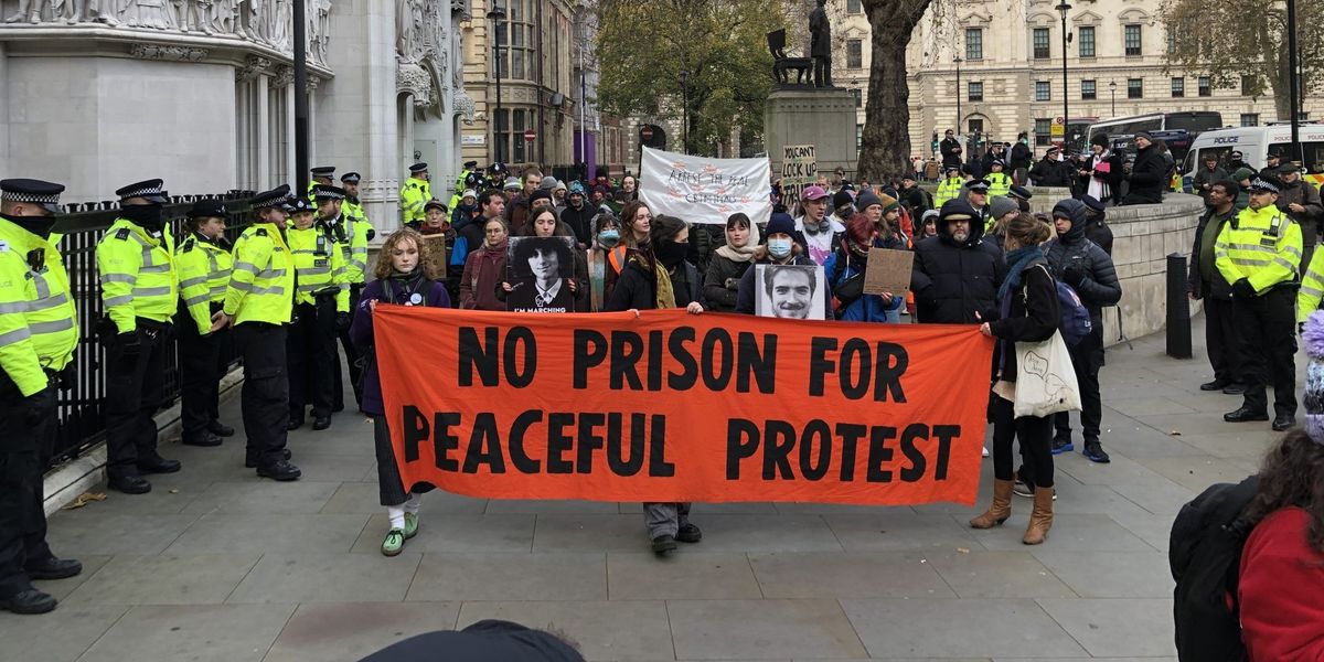 Just Stop Oil said they have six supporters in prison, six of whom have been imprisoned, without trial, for “marching in the road.”