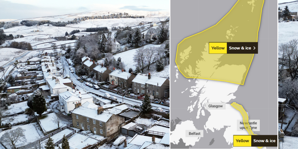 The Met Office has issued several yellow snow and ice warnings for parts of the UK, as areas of Scotland and Northern England can expect up to 5cm of snowfall.