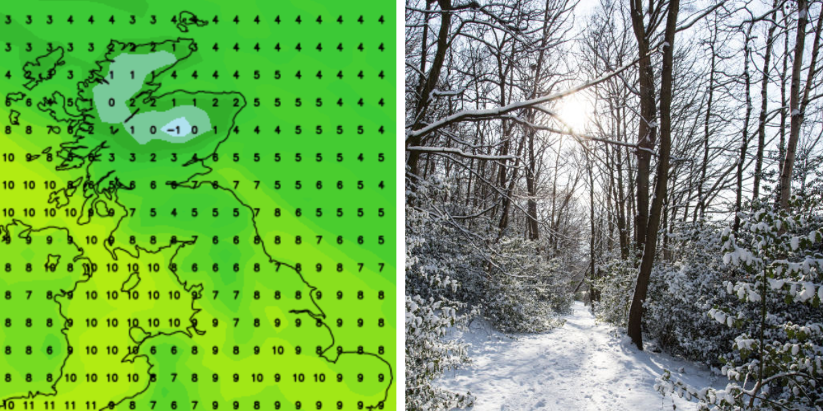 There could be snow over higher ground in the UK