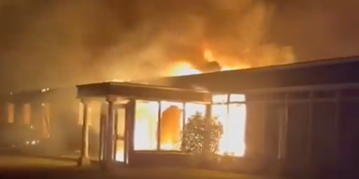 A huge fire has ripped through a hotel in Galway just hours after demonstrators blocked the entrance in protest against plans to house migrants at the 19th century building.