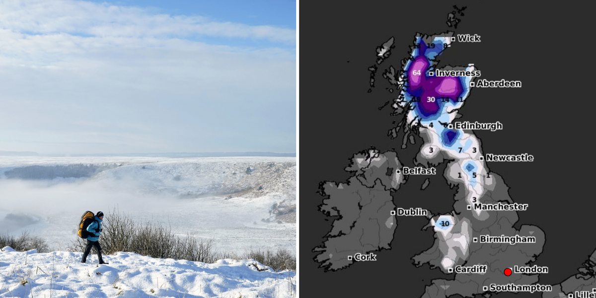 Alongside the heavy snowfall, temperatures will plummet to a bone-chilling -8C on January 2.
