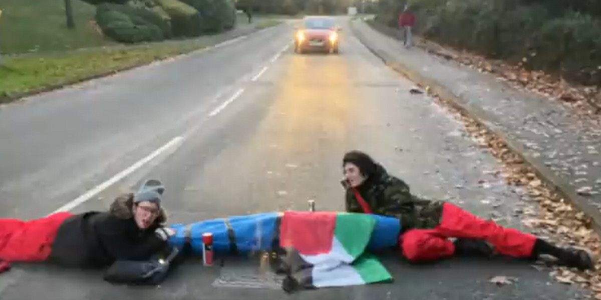 The group, Palestine Action are preventing workers from accessing Elbit Systems at Meridian Business Park.