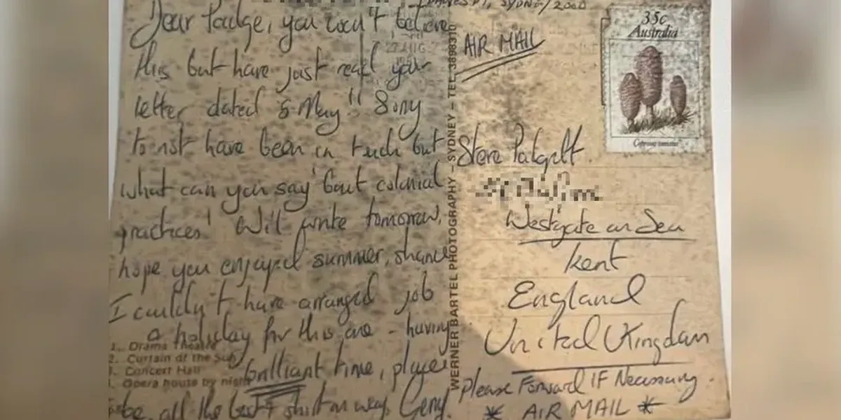A postcard has arrived at a home in Kent some 42 years after it was sent from Australia.