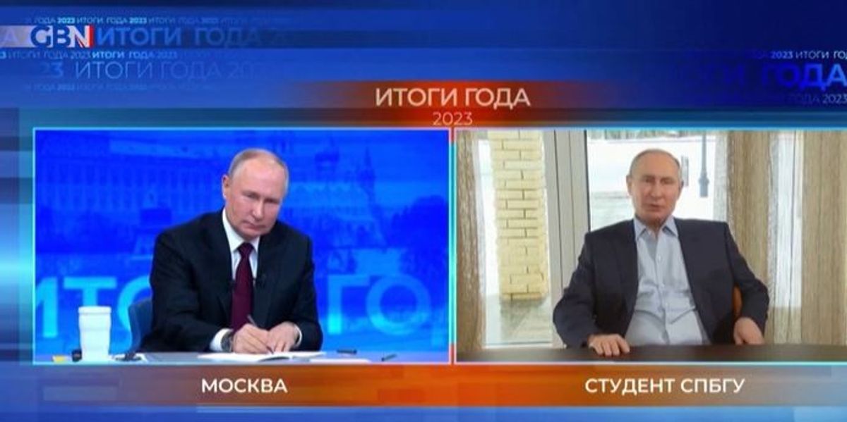 Vladimir Putin appeared briefly lost for words on Thursday when confronted with an AI-generated version of himself at his annual press conference.