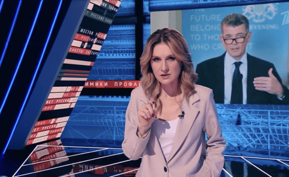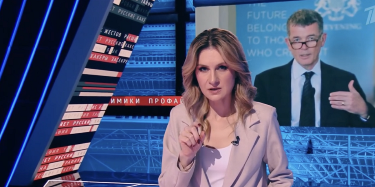 Channel 1 transmitted a video message from the boss of the Secret Intelligence Service during an hour long broadcast hosted by ex-Russian spy Maria Butina.