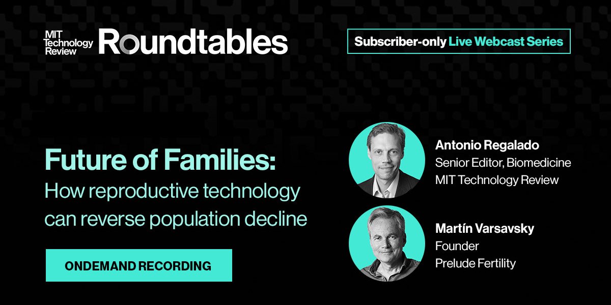 Speakers: Antonio Regalado, Sr Editor of biomedicine and special guest Martín Varsavsky, Founder of Prelude Fertility