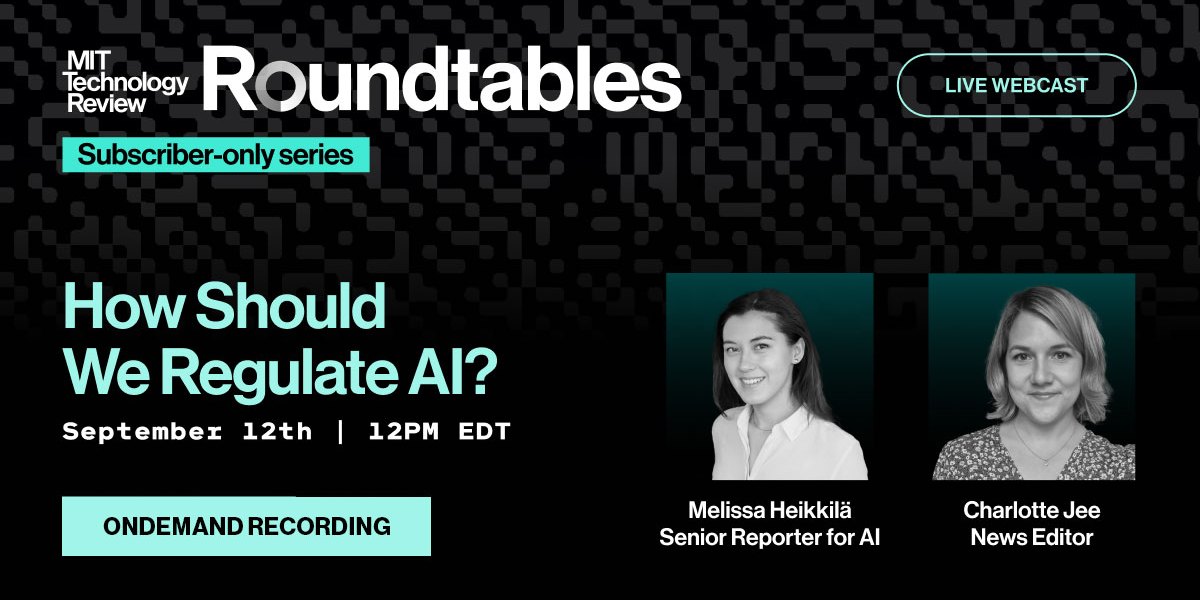 Speakers: Melissa Heikkilä, Senior reporter for AI and Charlotte Jee, News editor