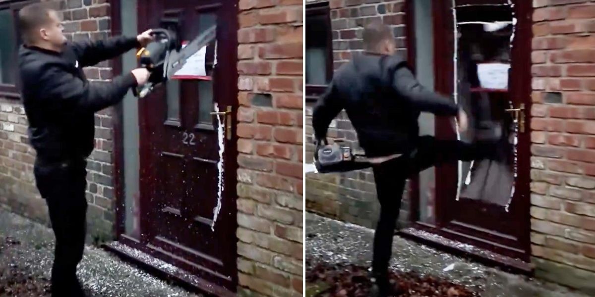 A controversial landlord has cut through his tenant’s door with a chainsaw in a bid to evict a tenant.