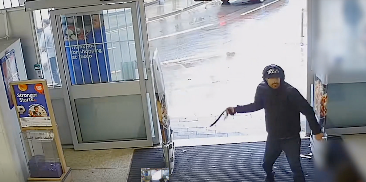 After being forced out of the Tesco he returned for a third time with a metal chair, smashing the windows and destroying the store’s security fittings.