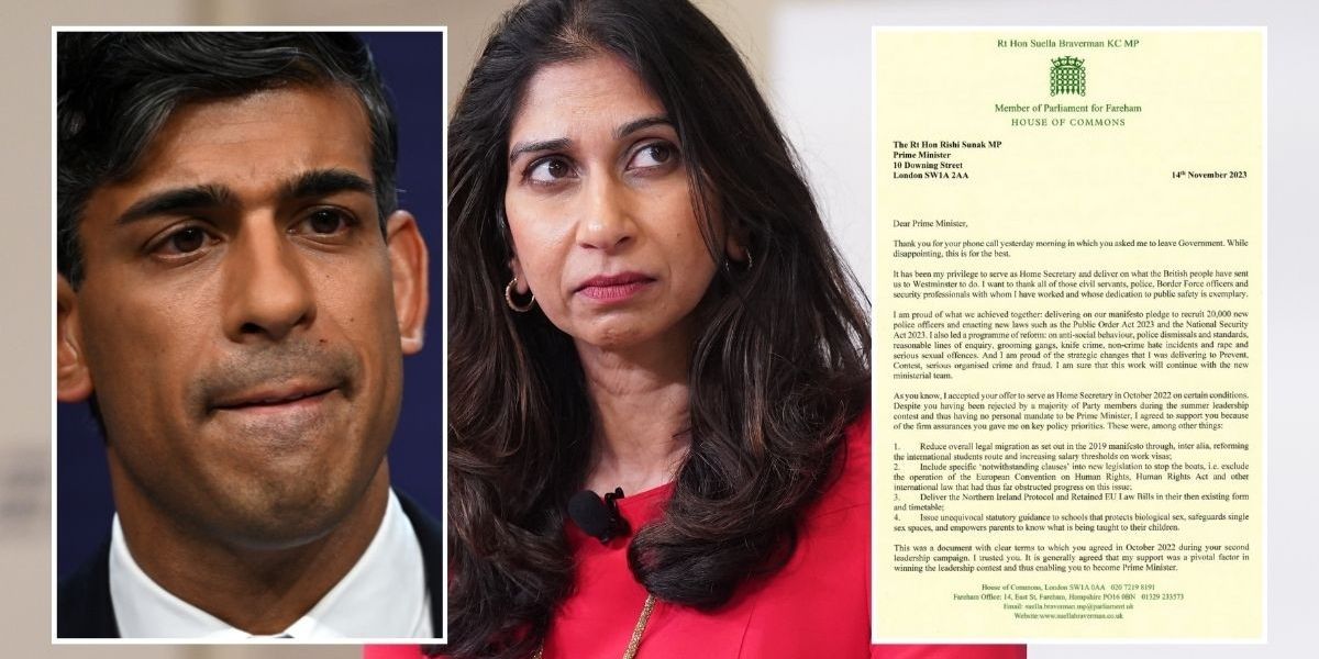 Suella Braverman wrote a damning letter to Rishi Sunak last night, days after she was asked to leave the Government. The letter sees the Home Secretary accuse the Prime Minister of breaking promises to the British people, and issue a stinging attack on his character.