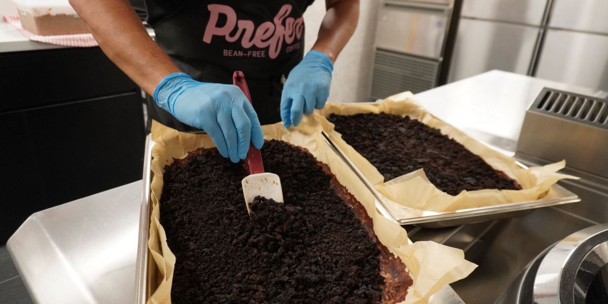They spent months experimenting with various ingredients. “From my previous work, I had an inkling of what might work,” says Tan, but narrowing it down to the exact proportions, processes, and types of leftovers took a while. They tried roasting chicory root, which had been used as a coffee substitute before, but while the result was reminiscent of coffee, the taste wasn’t close enough. They tried grinding date seeds, which yielded a fruity tea-like drink, a far cry from coffee. Then some batches brewed from mixtures of food leftovers showed promise. They used gas chromatography mass spectrometry, a technique that identifies individual molecular compounds in mixtures, to identify and analyze the molecules responsible for the desired taste. The results guided them in tweaking new iterations of the brew. After a few months and several hundred different mixes and methods, they zeroed in on the right combination: stale bread from bakeries, soybean pulp from tofu making, and spent barley grains from local breweries. “We combine them in roughly equal amounts, ferment for 24 hours, and then roast,” Tan says. Out comes a naturally caffeine-free “coffee” that can be enjoyed with plant-based or regular milk. Or added to a martini—local bartenders jumped on the novelty. Without milk, the drink “tastes a little more chocolatey and retains the notes of herbaceous bitterness,” according to Tan. Price-wise it’s comparable to your average coffee, Berber says. Prefer sells a powder to be brewed like any other coffee, as well as bottled cold brew and bottled latte. The products can be bought online and ordered at various Singaporean cafés.