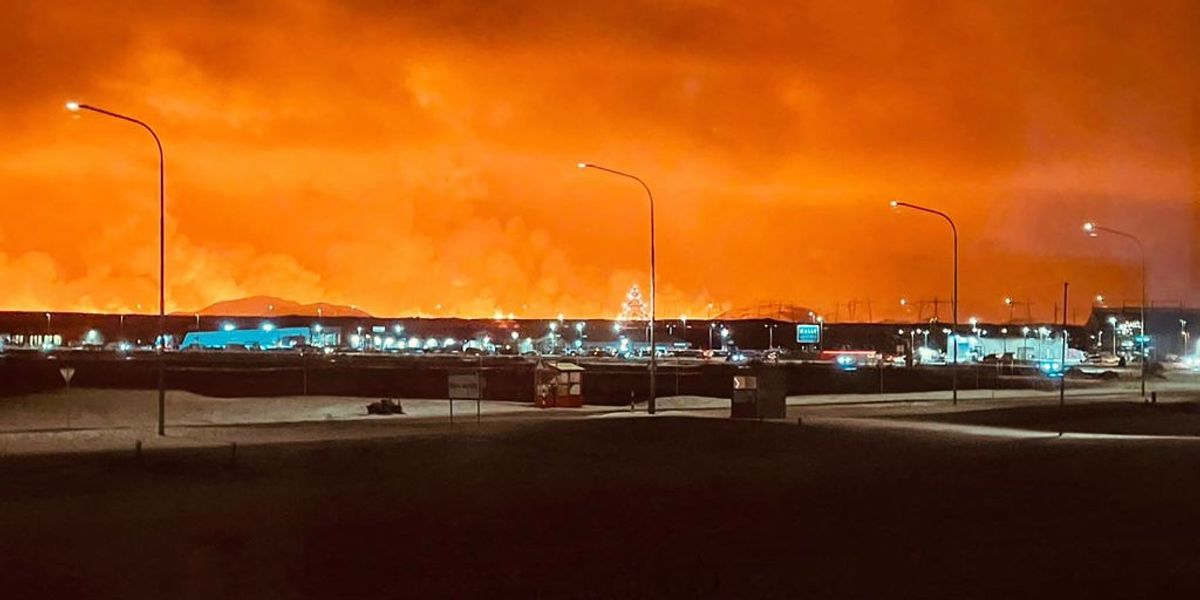 The eruption began around 2.4 miles from the town of Grindavik just after 10pm on Monday.