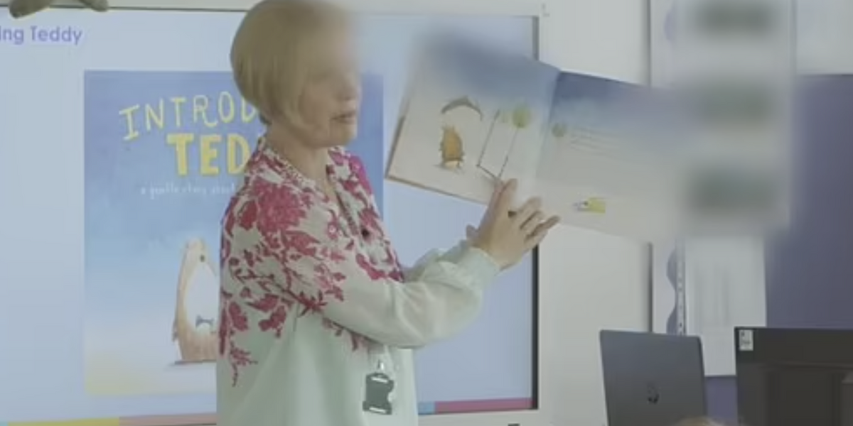 Video footage has emerged of a teacher reading a book about a trans teddy to a group of children.