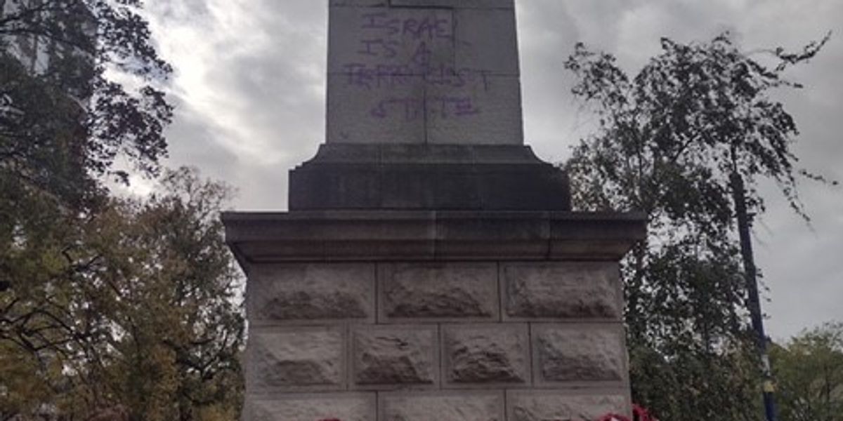 Police are appealing for information from the public after anti-Israel graffiti was daubed on a war memorial in South London.