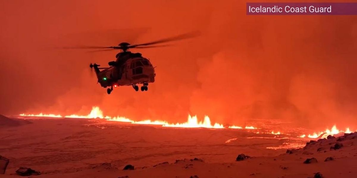 Skies turned orange and immense smoke clouds took over the site near the town of Grindavik.
