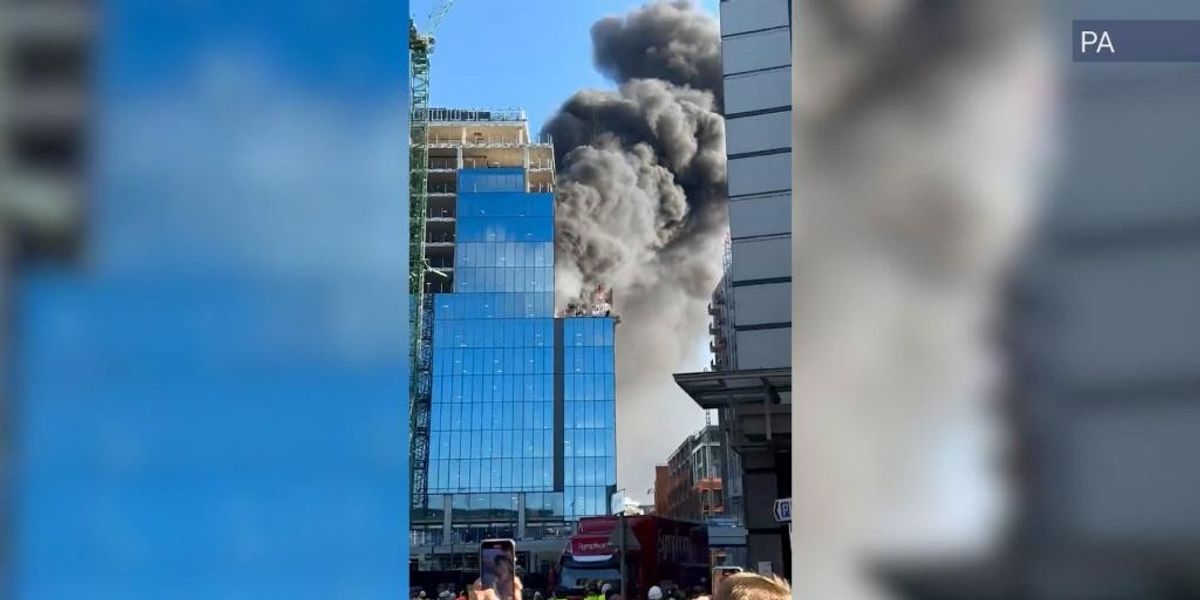 The scene at the Station Hill development site in Reading where a fire broke out trapping a workman on the roof. Two people were taken to hospital for treatment for smoke inhalation.