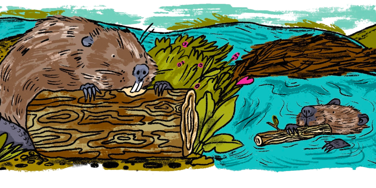 As efficient creators and stewards of wetlands, beavers provide a hospitable ecosystem for dozens of other creatures, from insects, frogs, and turtles to owls, otters, great blue herons, and even moose and deer. What’s more, by harvesting undergrowth for their dams and creating ponds and bogs that raise the moisture content of the soil, beavers lessen the likelihood that forest fires will spread. As forest fires devastated Oregon in 2021, beaver wetlands remained green and lush, acting as natural firebreaks. On aerial images of the charred landscape, the beaver’s habitat stands out, a wide and verdant ribbon running through the blackened trees.